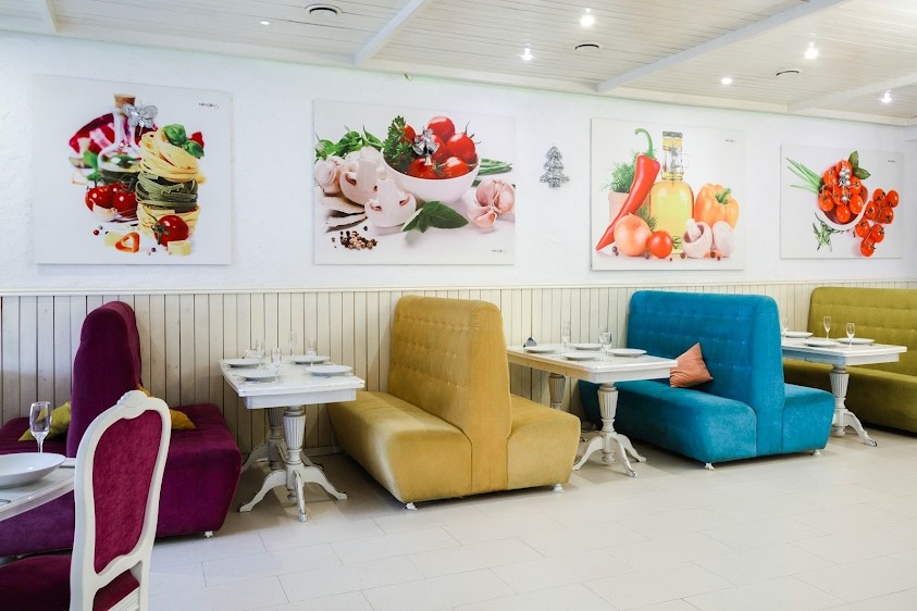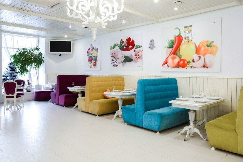 Ресторан Chipollino - это уютный зал, выполненный в итальянском стиле, который не требует дополнительного оформления.