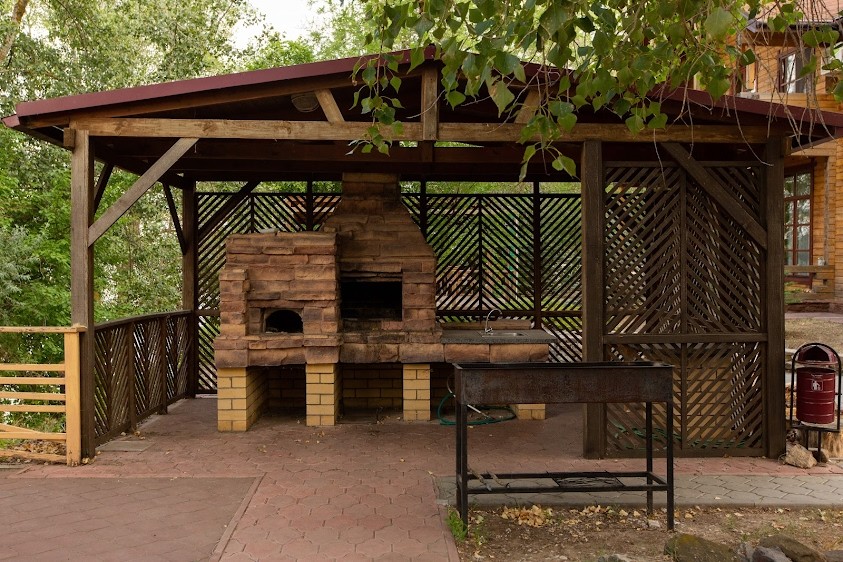 - Удобная раковина возле мангальной зоны с печью;