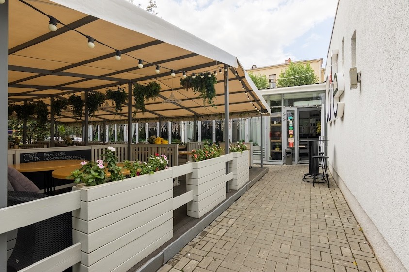 Кафе "Wok Cafe" с панорамными окнами, откуда открывается вид на улицу города находится возле Касимовского сквера в самом центре Волгограда.